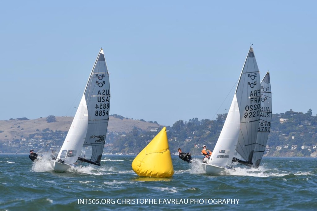 How’s that for a nice shot? All those 505 spread out racing downwind, with the Golden Gate in the background.