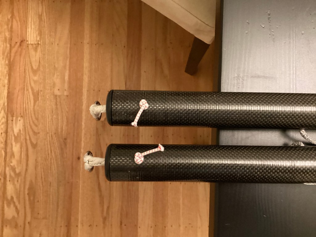 After, our solution was to rig “spitters”; small pieces of shock cord inside each pole, which pulls slack in the launcher line forward. (They cause the launcher lines to “spit” out of the front of the poles, hence the name.)
